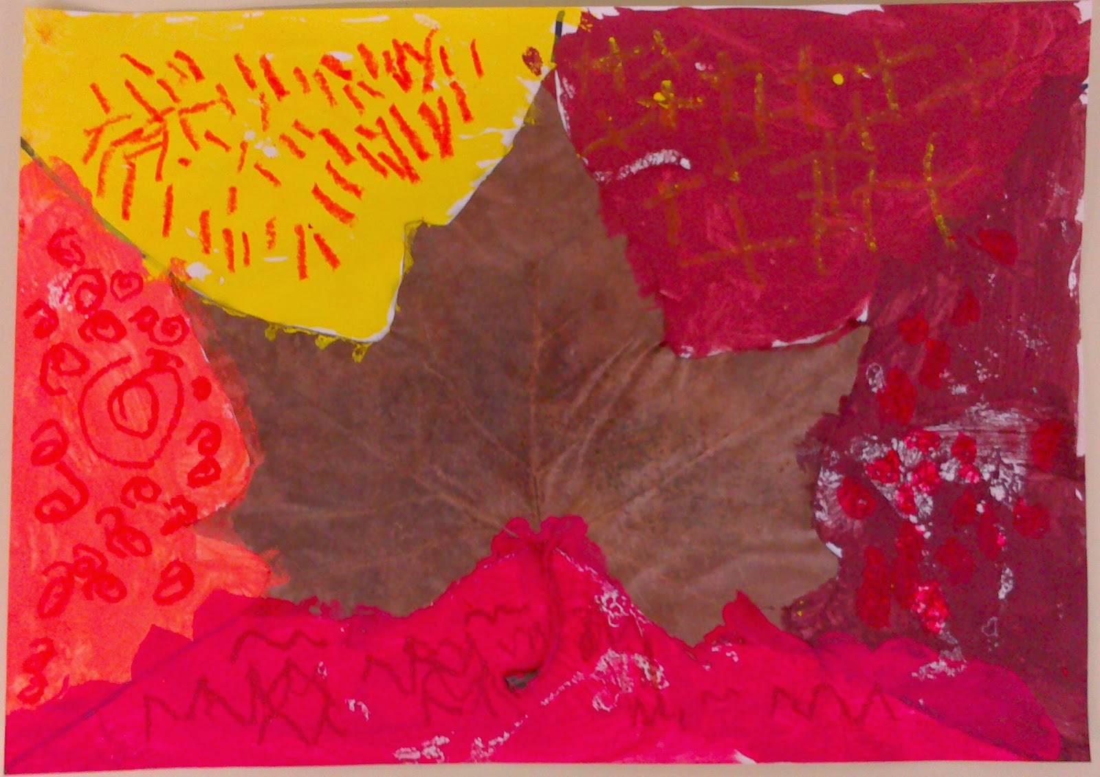 Por parejas dibujaron el contorno del brazo y con trocitos de papel de seda simulamos las hojas.
