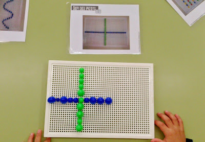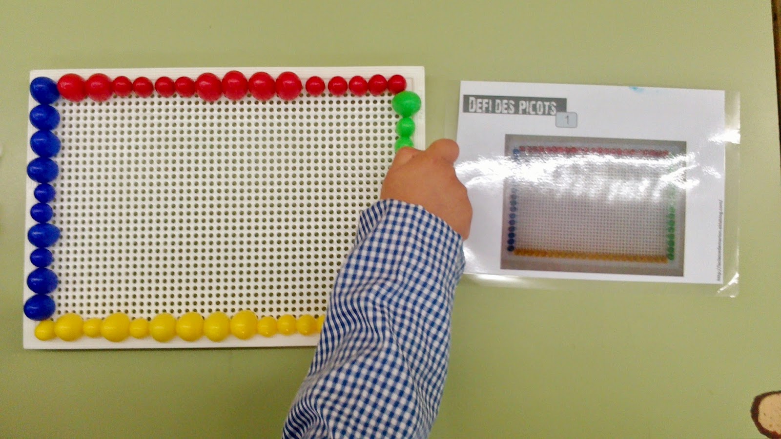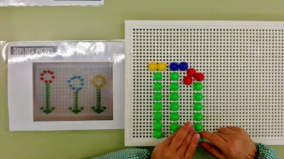 En ésta ocasión no es un juego libre sinó que tienen que copiar una producción. Hay niños a los que les gusta este tipo de actividad, se concentran, se relajan... Otros en cambio no tienen paciencia, les cuesta pasar de la imagen a la producción, pero poco a poco lo van consiguiendo.